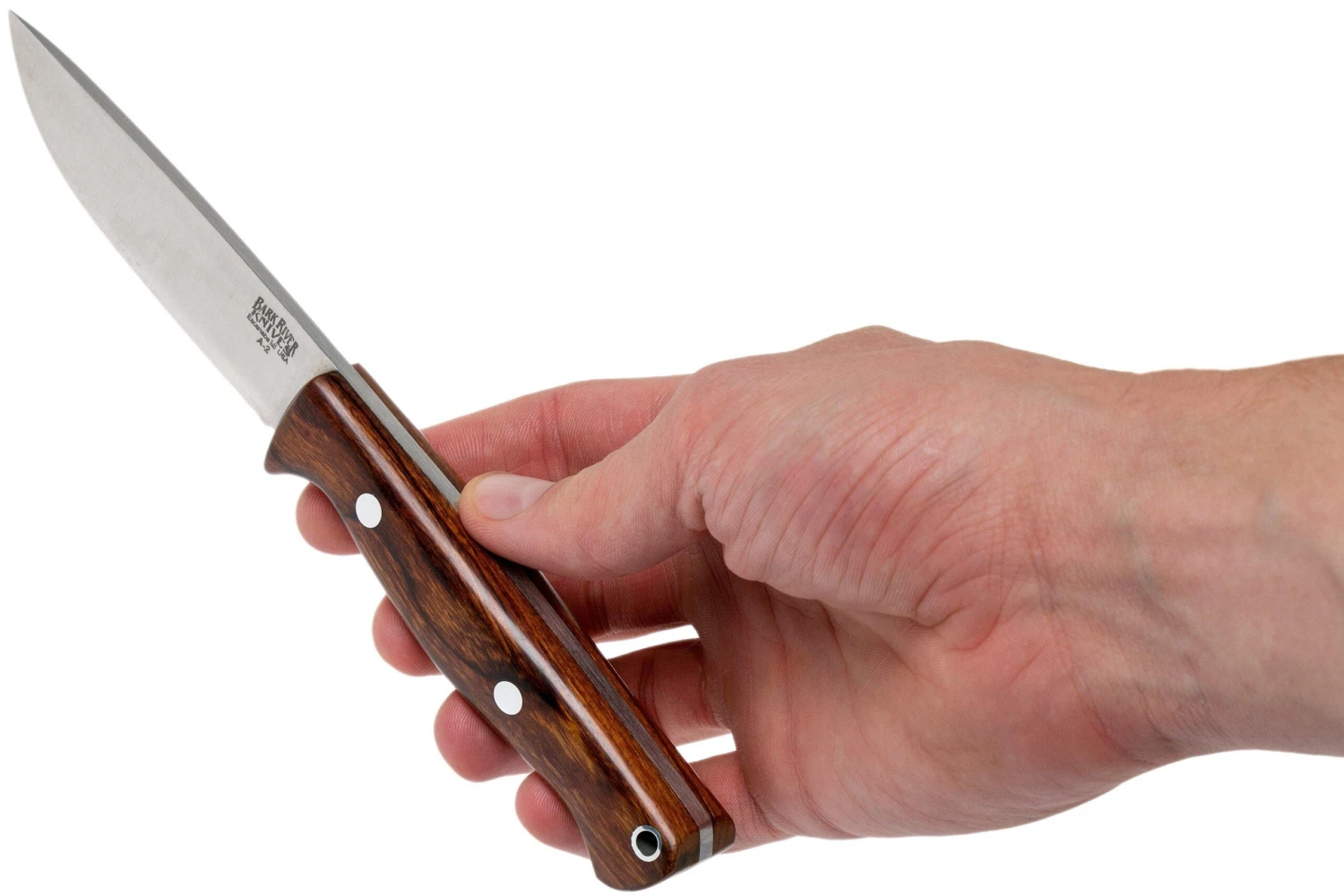El Bark River Gunny Hunter es una versión más compacta del Bravo 1. Originalmente este cuchillo fue diseñado para uso paramilitar. Sin embargo, pronto se hizo evidente que este cuchillo era capaz de mucho más. Hoy en día, el Gunny es un cuchillo muy popular entre los entusiastas de la caza y los cazadores. Tiene una construcción sólida con un grosor de hoja suficiente para las tareas más exigentes. Al mismo tiempo, es lo suficientemente ligero para las excursiones. Un cuchillo perfecto que se puede utilizar para muchos propósitos. Esta versión especial Hunter del Gunny está mejorada con un afilado de sable. Esto significa que el afilado es diferente a la del Gunny estándar. El Hunter es ligeramente más delgado detrás del filo y, por lo tanto, es más adecuado para las tareas de acampada y la caza. El Gunny Hunter tampoco tiene jimping o una rampa para el pulgar.