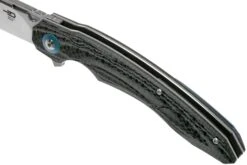 La Bestech Fanga BG18 es una genial navaja EDC, por un precio increíble. Con una hoja de 10 cm es un modelo bastante grande, pero con sólo 135 gramos sigue siendo relativamente ligero. Lo más destacable de la Bestech Fanga es el material del mango: se trata de una combinación de G10 y fibra de carbono. Lo que se suele ver es que sólo la capa superior es de fibra de carbono, pero en este caso las capas de fibra de carbono y G10 se alternan. De este modo, se consigue un efecto genial que casi parece acero de Damasco. Hace juego con el excéntrico diseño de la Fanga. De este modo, se obtiene un cuchillo con un aspecto y un tacto muy atractivos, por un precio increíble.