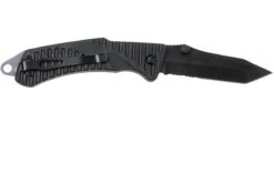 Este cuchillo plegable es ideal para un uso polivalente y al aire libre. Un cierre trasero muy sólido y una hoja de acero 12C27-Sandvik de alta calidad garantizan la robustez y fiabilidad que se espera de un cuchillo de este tipo. La hoja tiene unas prácticas crestas para poder dirigir el cuchillo mientras se usa. No parece muy exótico, pero es perfecto para el uso diario. La hoja es apta para zurdos y diestros y puede abrirse con una sola mano mediante el pasador para el pulgar.