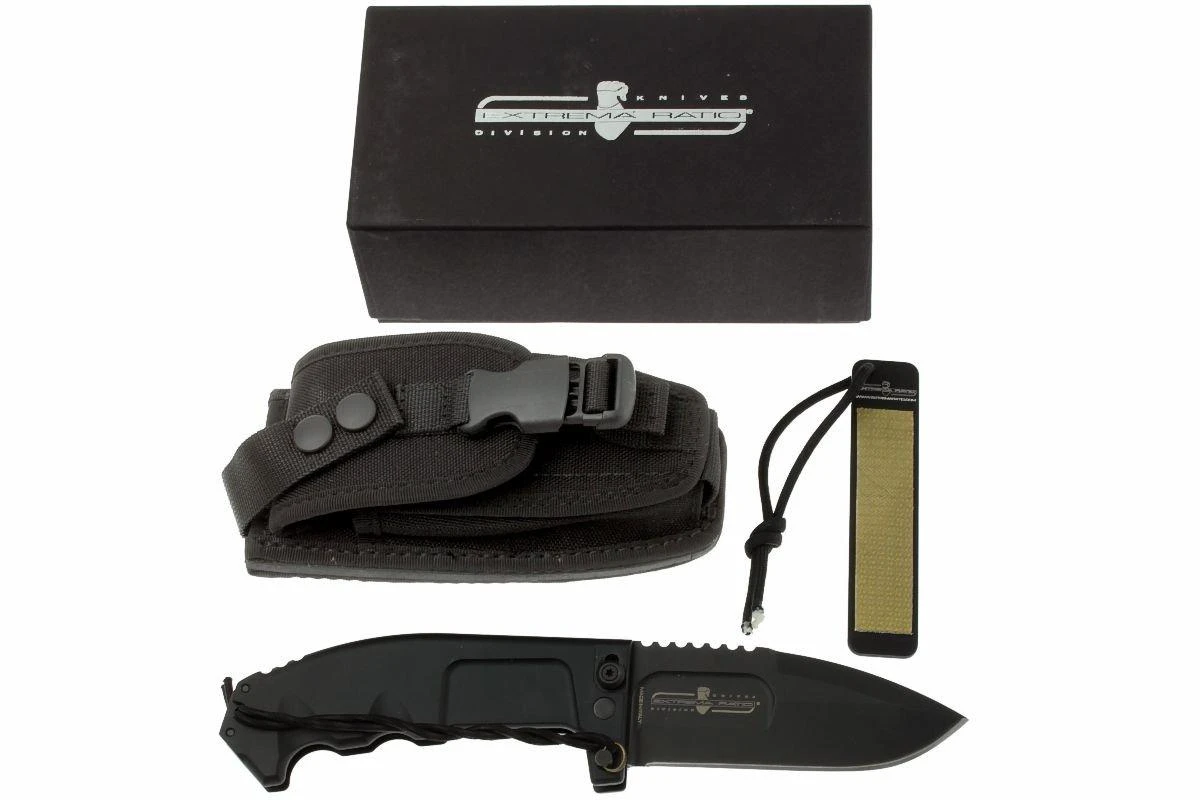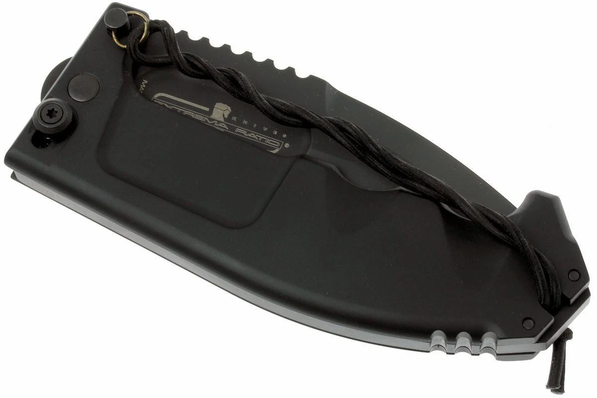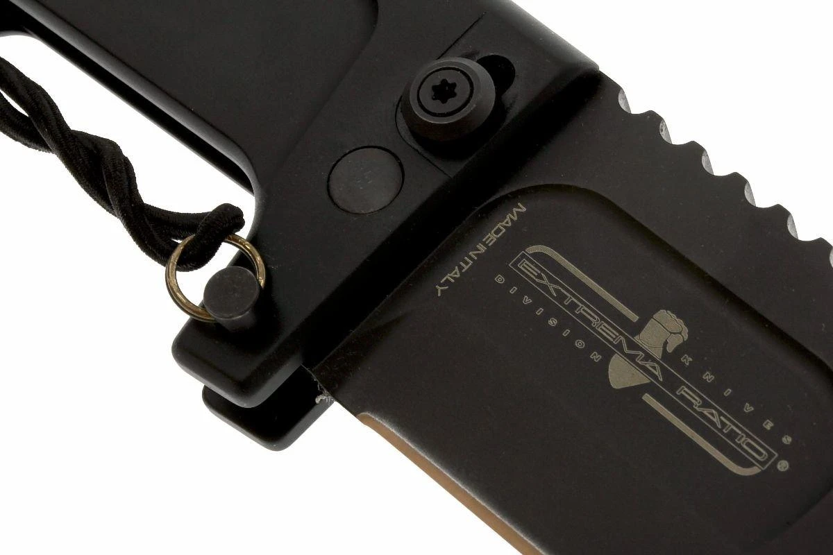La Extrema Ratio RAO es una navaja táctica plegable muy sólida con una hoja muy pesada y fuerte, provista de un cierre extremadamente seguro más un mecanismo de seguridad adicional en forma de pasador de acero de ajuste manual. La funda cumple con los requisitos militares M.O.L.L.E. y se entrega con un afilador de diamante. La RAO puede guardarse en la funda tanto en posición plegada como desplegada. El desarrollo de este cuchillo es encargado por el ‘185° Rgt. ‘Ricognizione ed Acquisizione Obiettivi’ (Regimiento de Adquisición de Objetivos) aéreo ‘Folgore’ (185° RAO). El lema de este regimiento especial es: ‘Videre Nec Videri’ (Ver sin ser visto).