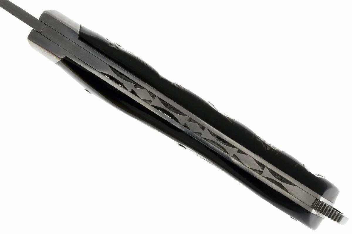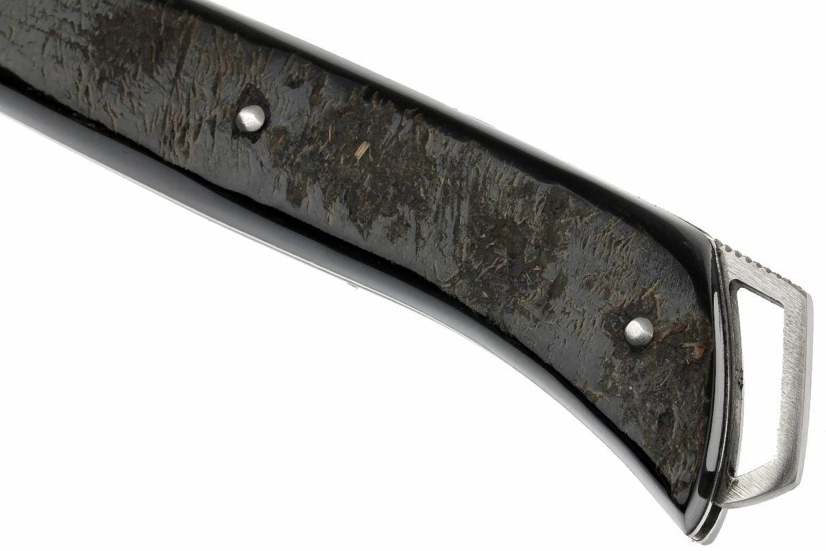 La colección ‘Le Saint-Bernard’ de Fontenille Pataud toma su nombre del paso de San Bernardo, de un hospicio con el mismo nombre y, por supuesto, del San Bernardo (perro). El cañón grabado en la hoja, es una sutil referencia a la última. Los bernardos llevaban estos barriles, llenos de coñac, para devolver algo de energía a las personas adormecidas que se encontraban en las montañas. Los fabricantes de cuchillos de Fontenille Pataud han vuelto a demostrar su habilidad y han creado unas navajas muy especiales dentro de esta colección de cuchillos. El diseño es ligeramente más fuerte que el tradicional cuchillo Laguiole y, por tanto, se adapta cómodamente a la mano. El sólido backlock es fácil de desbloquear en el extremo del mango. La amplia y angulosa abertura del extremo, ofrece un cómodo espacio para un cordón o cadena. Para asegurarte de no perder tu cuchillo único.