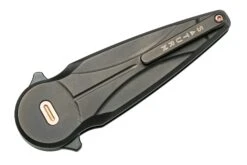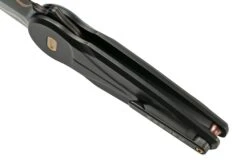 Con la Fox Saturn Copper Damascus, una versión especial de la Fox Saturn, Fox demuestra una vez más que pertenece a la cima absoluta de la producción de cuchillos. El fresado del mango es precioso y el acabado es de primera. El Saturn es un diseño de Denis Simonutti. Esto se refleja claramente en el sistema de apertura, ya que se abre el cuchillo con un perno para el pulgar que está incorporado en el mango. Este sistema también bloquea la hoja en posición abierta y cerrada. El Fox Saturn ya ha ganado varios premios. Por ejemplo, ganó «Cuchillo general del año 2021» y «Cuchillo importado del año 2021» en el Blade Show de Atlanta, Georgia.