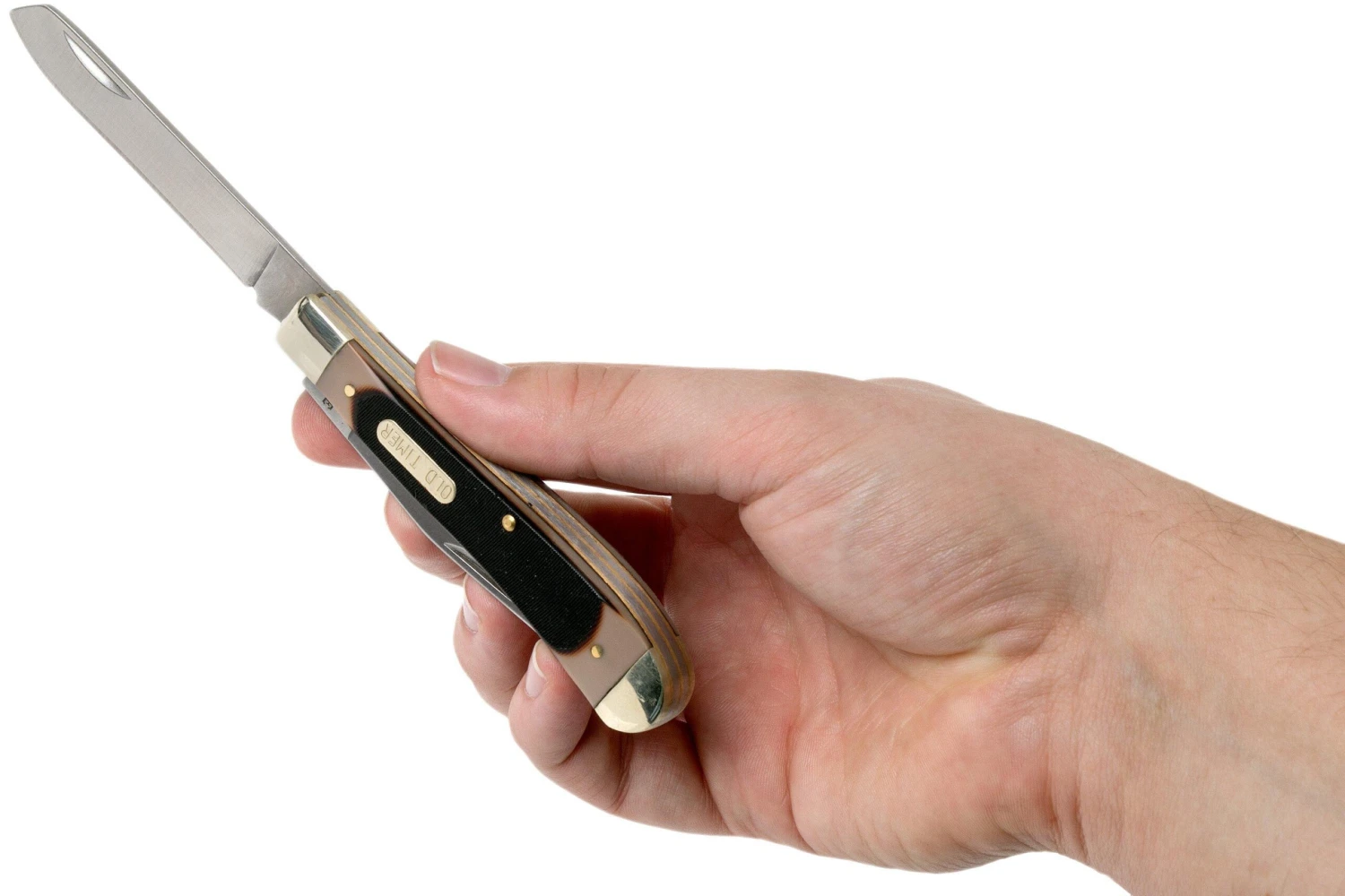 La Old Timer Gunstock Trapper 94OT es una navaja asequible con mango de polímero. Es un compacto tradicional con dos hojas: una de punta de clip y otra de spey. Las hojas se abren con las dos manos y, una vez abiertas, un slipjoint bloquea la hoja en su lugar. No es un bloqueo total, sólo algo de resistencia. Esto significa que puedes llevar estos cuchillos legalmente en casi cualquier lugar.